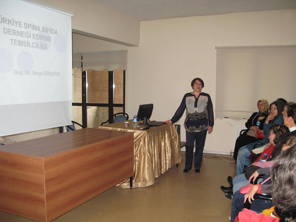 18 Kasım 2014 Salı günü Türkiye Spina Bifida Derneği Edirne Temsilciliğimiz Trakya Üniversitesi Tıp Fakültesi, Dekanlık A Salonunda eğitim semineri düzenledi. “Böbrekleri Koruma Yolları” konulu eğitim Edirne Temsilcimiz Trakya Üniversitesi Tıp Fakültesi Çocuk Sağlığı Ve Hastalıkları Anabilim Dalı Öğretim Üyesi Doç. Dr. Neşe ÖZKAYIN tarafından verilmiştir. Seminere Edirne’de yaşayan Spina Bifidalı çocuklarımız ve aileleri katıldı. Eğitimde “Böbrekleri Koruma Yolları” , dernek faaliyet ve amaçları, “Unlara Folik Asit Vitamini Eklenmesi Yasal Zorunluluk Olsun” imza kampanyası hakkında bilgi verildi. Katılımların soruları Doç. Dr. Neşe ÖZKAYIN tarafından cevaplandı. Edirne Temsilciliği olarak Eğitim Seminerlerine ve çeşitli etkinlikler ile faaliyetlerine devam edeceklerini ifade etti.